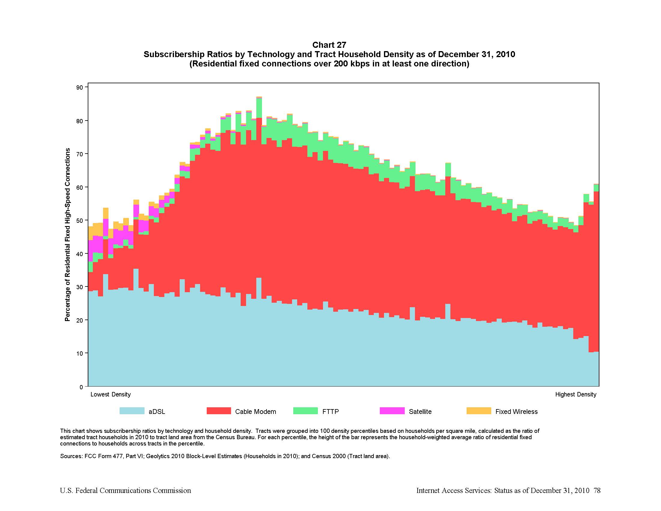 Once again, one picture describes US broadband use in a nutshell, showing how an essential quality — technology choice — varies with density.