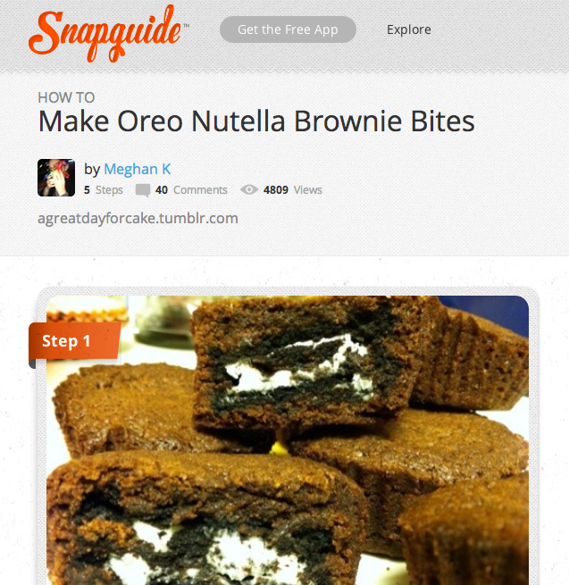 The author says there are no SnapGuide contributions showing up highly in Google search results so I searched for the example guide used in this post “oreo nutella brownie bites” and low and behold it was #1! Lol. They launched 2 weeks ago, not bad.