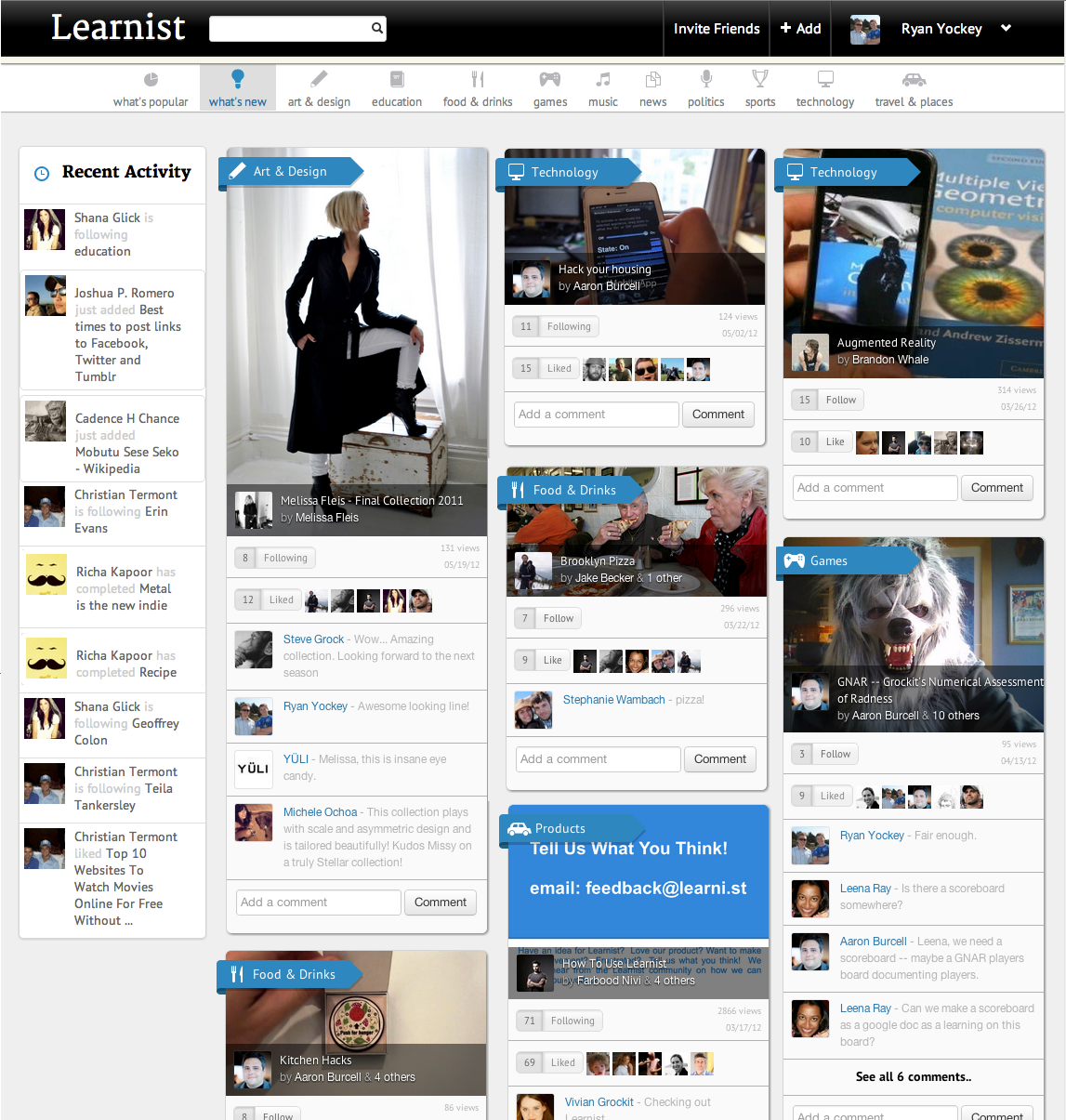 The second venture is The Learnist. The Learnist is a site that allows anyone to put up ‘boards.’ Basically, it is curated content but it is supposed to have a educational element to it. This is a bit like TED-Ed but with more content on each module. It is also a bit like iTunes U. What makes it interesting is that it links neatly to content across the web. So if you find a set of videos that you think together explain ‘supply and demand’ you can put them all together in a board. You can intersperse it with other web content such as papers and demos. I gave this a shot for the latest course I am teaching for the Next 36. The result is here. Of course, most of the content is my own but as time goes on I’ll add content from elsewhere too.