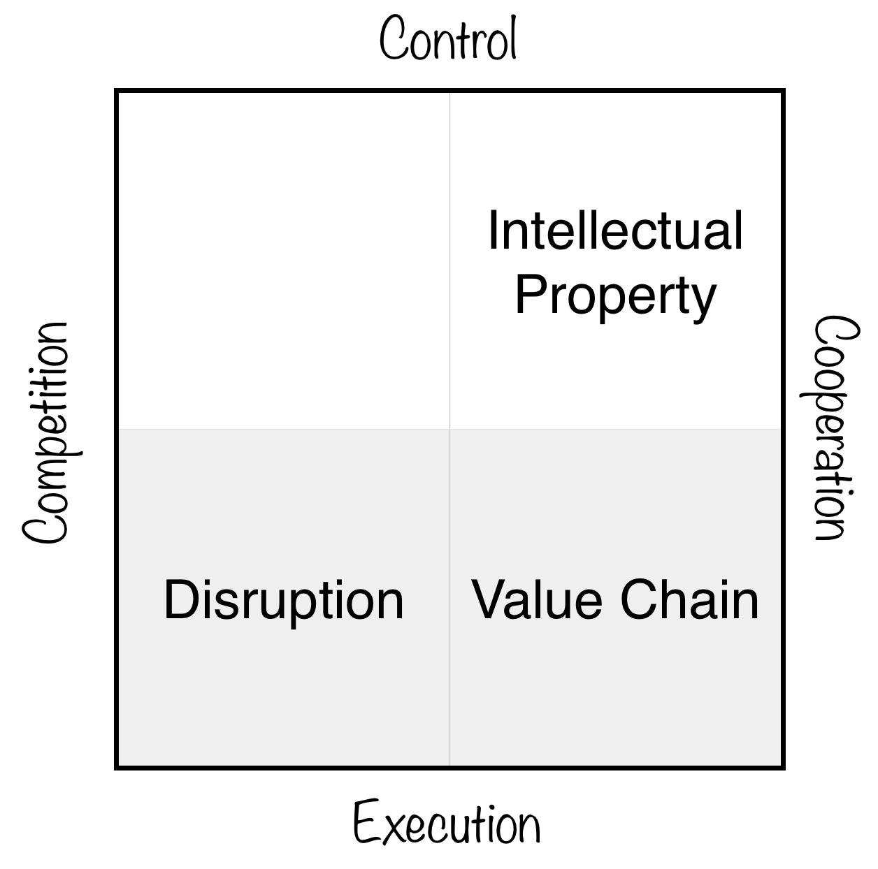As with execution, there are both compete and cooperate options open to entrepreneurs investing in control. Indeed, with these two dimensions, strategies now can be easily placed in a 2×2 (the mainstay of the MBA classroom).
