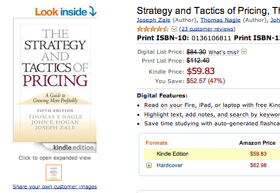 Amazon’s argument makes sense but let’s be clear about it. First, it does not expose an optimal price. It just says that $14.99 is a worse price than $9.99. Second, based on the price elasticity of demand, if it applied at $9.99, then if $9.99 is the right price, the optimal pricing formula suggests that: