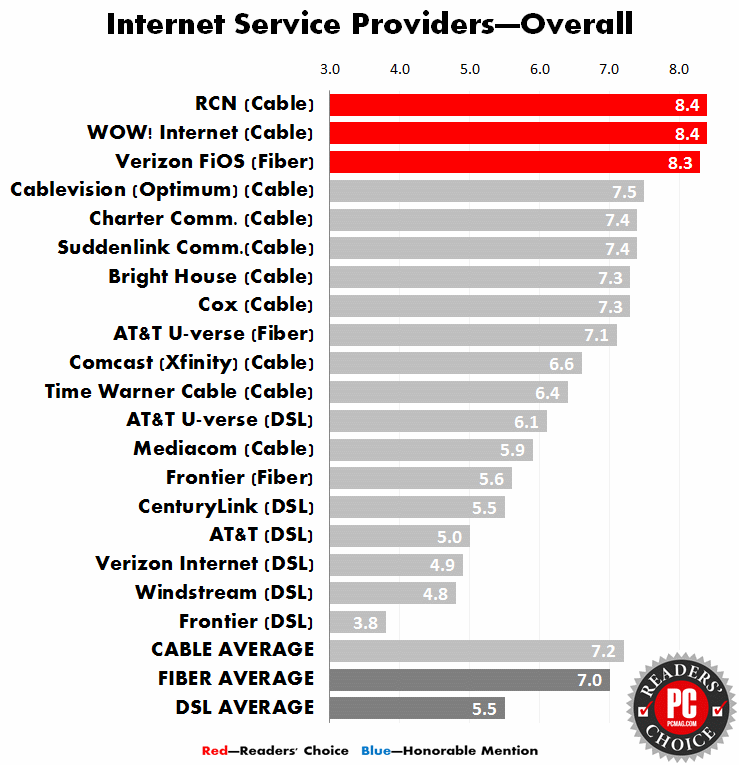 There are two good reasons for that variety. First, ISPs differ in their rates of capital investment. Partly this is due to investment costs, which vary greatly with density, topography, and local government relations. Rates of investment tend to be inherited from long histories, sometimes as a product of decisions made many years ago, which accumulated over time. These commitments can change, but generally don’t, because investors watch capital commitments and react strongly to any departure from history.